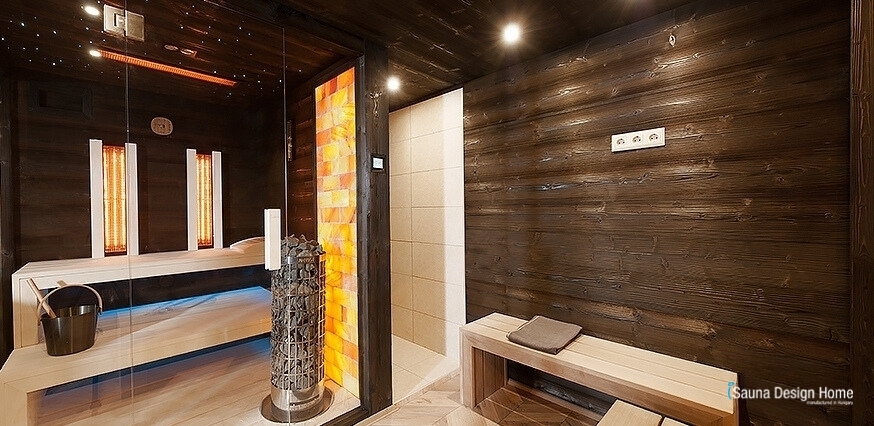 Es wurde des Weiteren eine kombinierte Sauna-Einheit aus dem dreier-Gemisch einer finnischen, infraroten Sauna und einer Himalaya-Salzwand eingebaut. Eine neues schneeweißes Espenholz der Klasse 1 in einer breiten Ausführung sichert die extravagante Erscheinung des Bodens der Sauna.