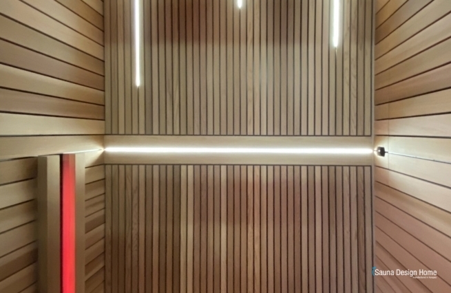 Das Aussehen der Sauna passt perfekt zu dem klaren, modernen Stil des bestehenden Hauses. Unsere Ingenieure und Designer mussten berücksichtigen, dass die finnische Sauna und die Infrarotsauna in zwei getrennten Räumen untergebracht werden sollten, die Fassade jedoch eine Einheit bilden sollte.