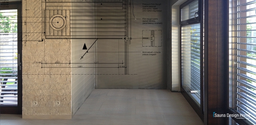 Nach der präzisen Vermessung am Sauna Aufstellungsort, wurden die kostenlosen, realitätsnahen 3D Plan angefertigt. Die Bilder über die zukünftige Sauna haben dem Kunden sehr gefallen, so haben wir mit der individuellen Sauna Herstellung fortgesetzt, und hat die exklusive Kombi Sauna mit der Sauna Installierung am Aufstellungsort ihren Platz gefunden.