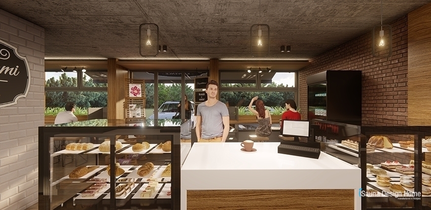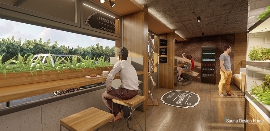 Innerhalb des Gebäudes gibt es einen visuellen Schaupult mit einem Servierbereich, Ess-Nischen an den Fenstern für 5-6 Personen, einen Kühl- und Abstellraum, einen Umkleideraum und Waschraum einen, sowie einen Besprechungsraum.