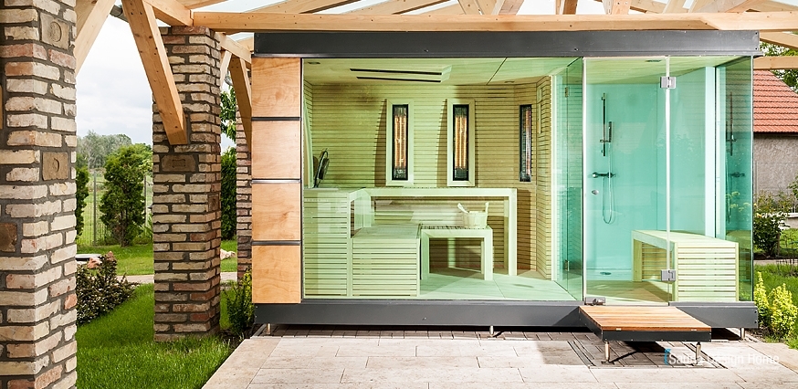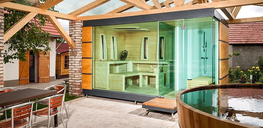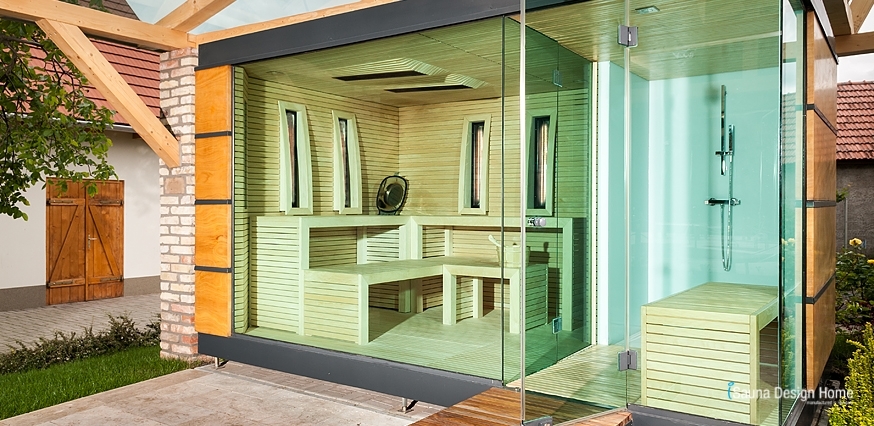 Neue Wellness Sauna Dienstleistung mit Wintergarten. Fordern Sie unsere individuelle 3D Sauna Planung und Angebot an, falls Sie den ländlichen Tourismus oder das Sauna Wellness Erlebnis zu Hause auf eine neue Ebene heben möchten.